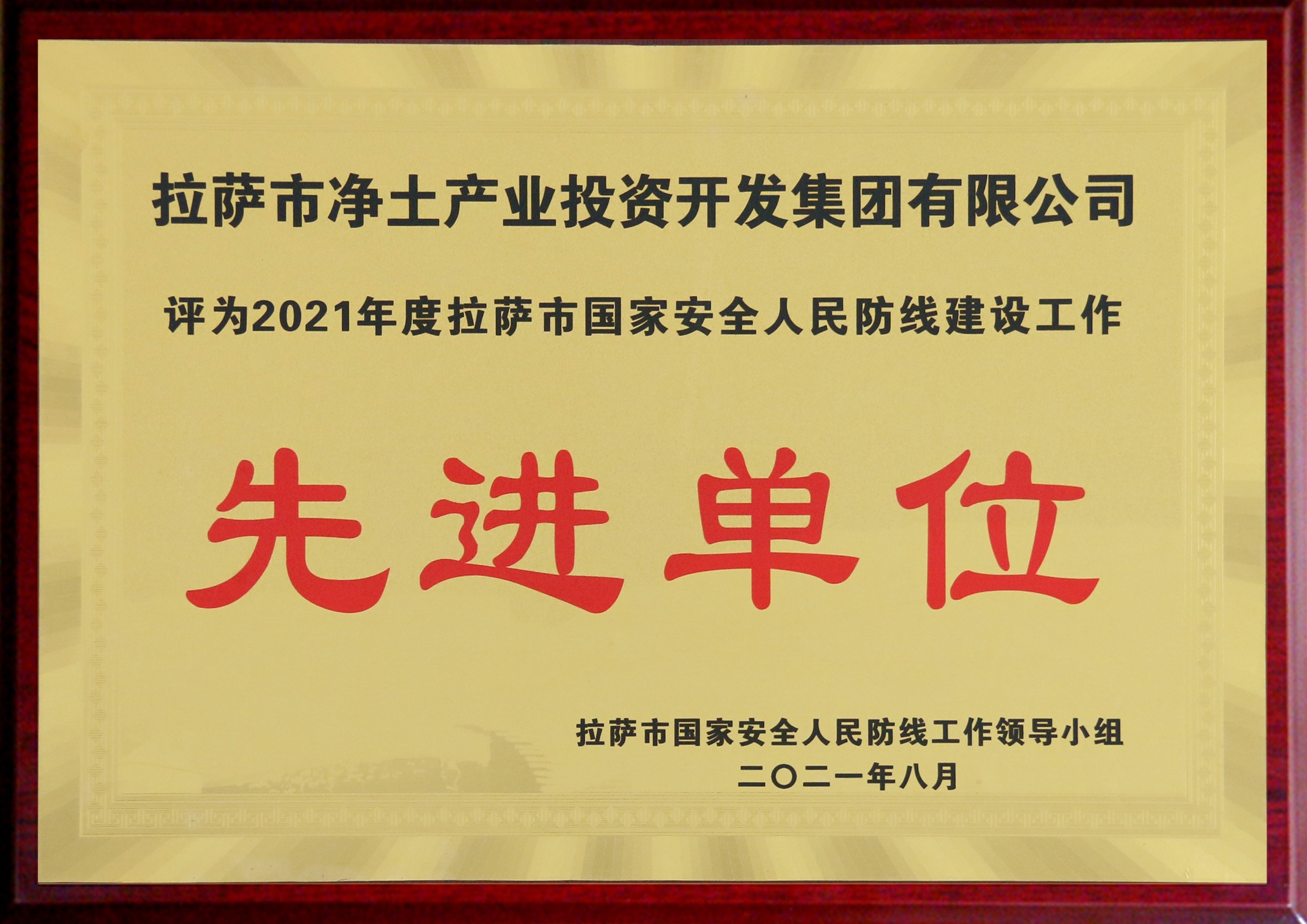 2021年度拉薩市國(guó)家安全人民防線建設(shè)工作“先進(jìn)單位”