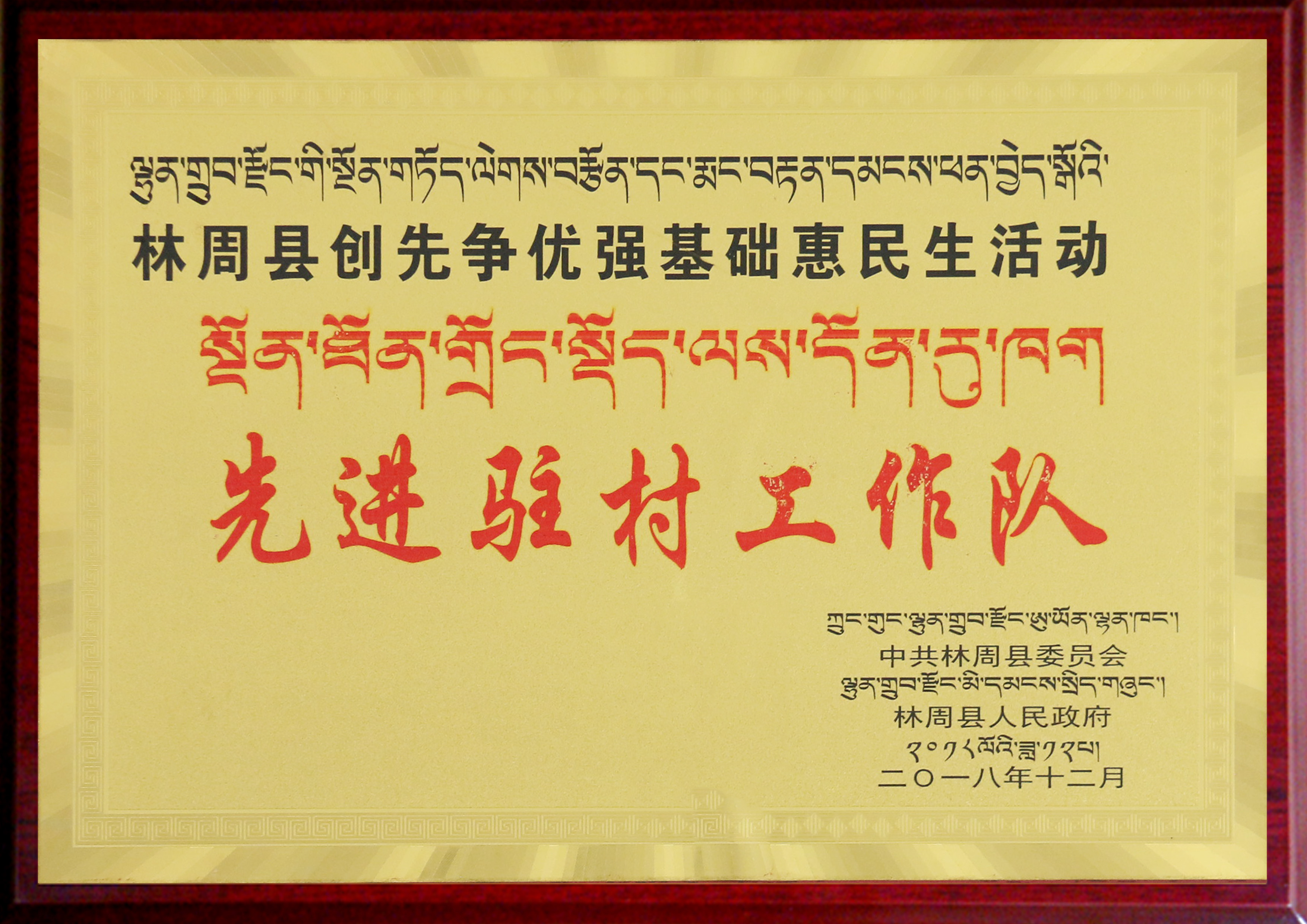 2018年林周縣創(chuàng)先爭(zhēng)優(yōu)強(qiáng)基礎(chǔ)惠民生活動(dòng)“先進(jìn)駐村工作隊(duì)”