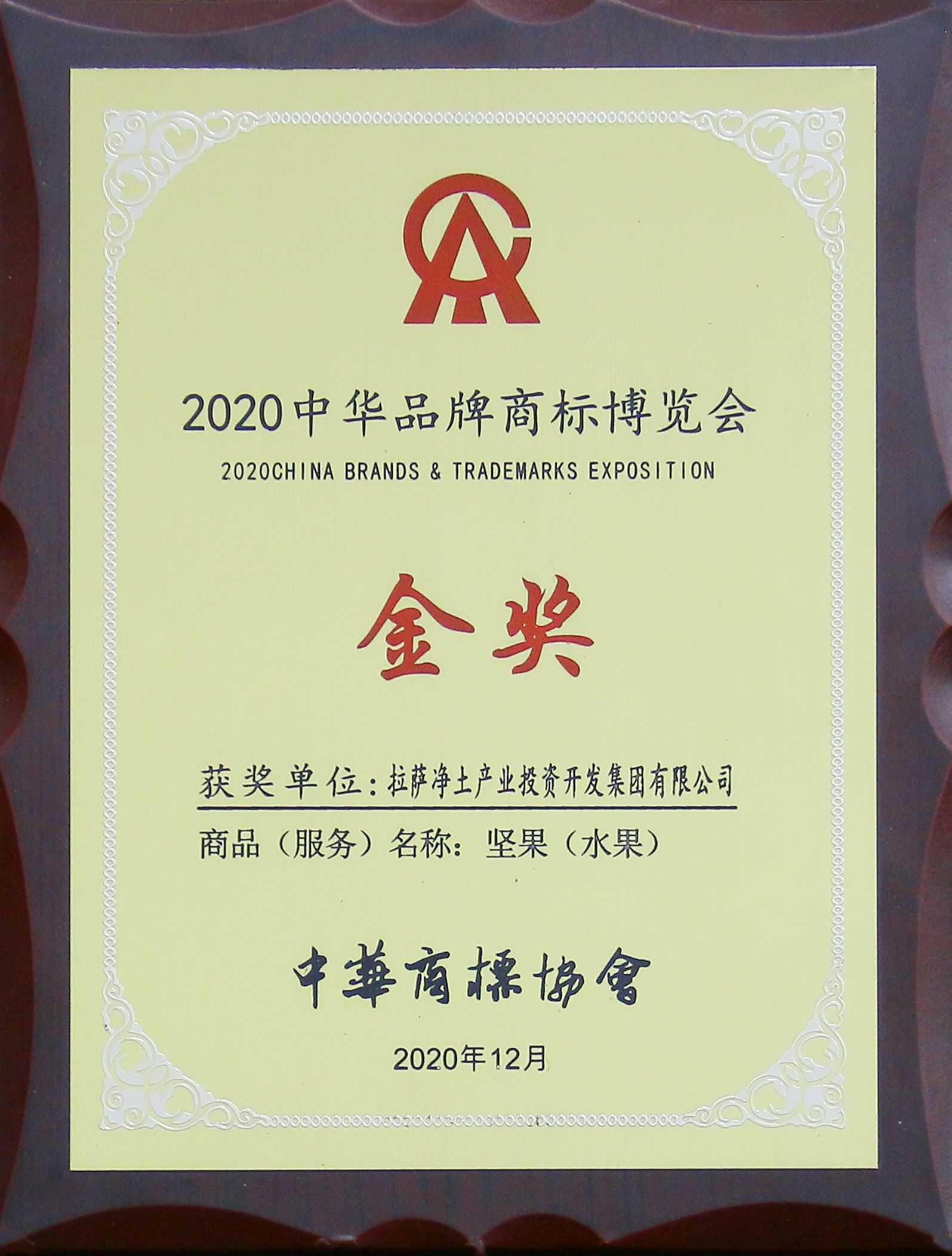 2020年中華品牌商標(biāo)博覽會(huì)金獎(jiǎng)