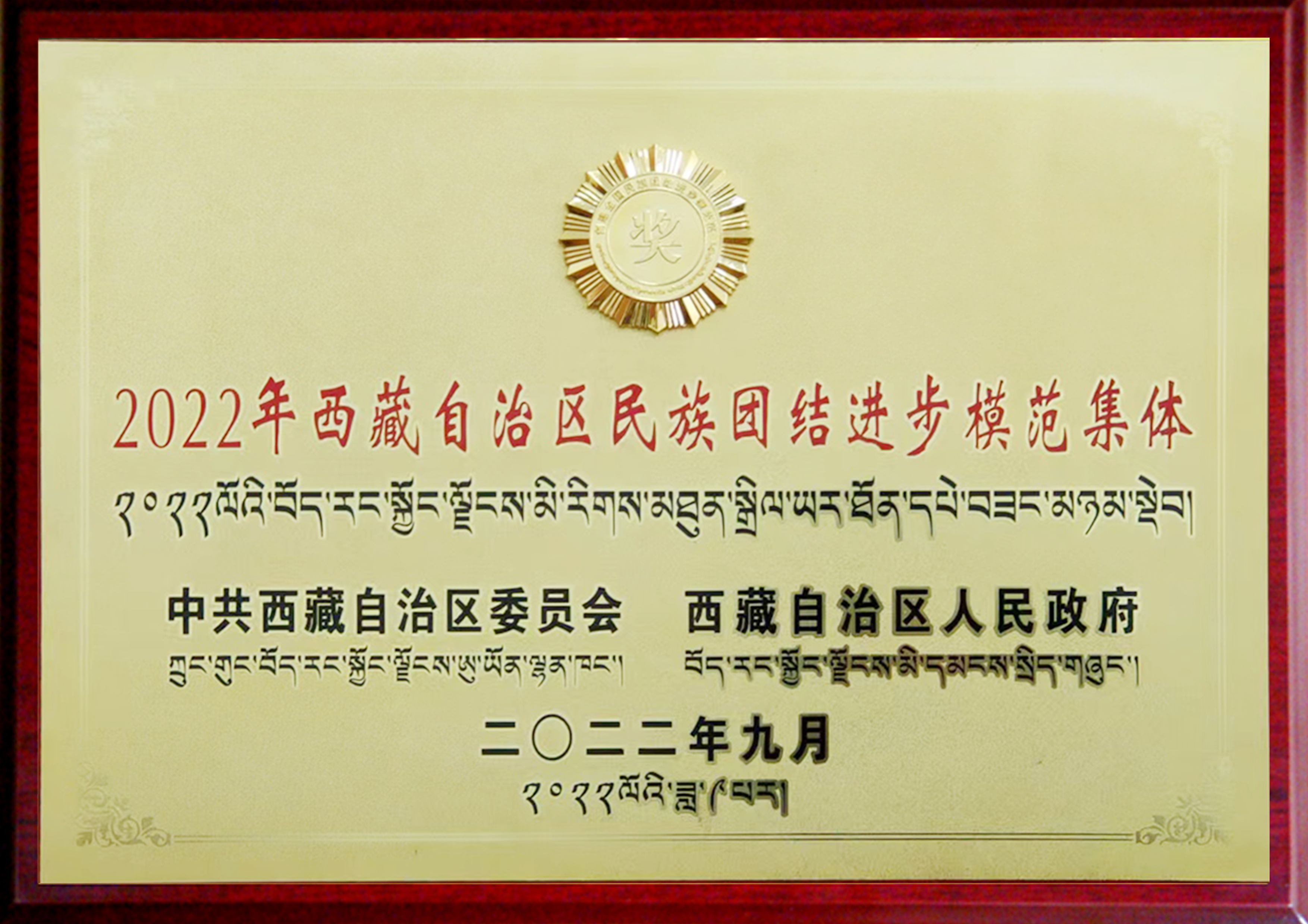 2022年拉薩市民族團(tuán)結(jié)進(jìn)步模范單位