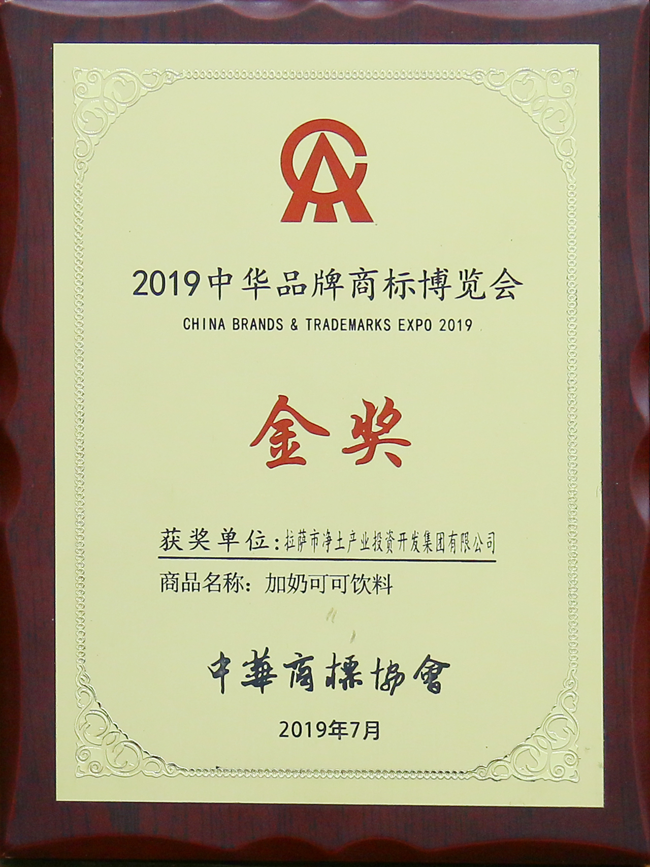 2019年中華品牌商標(biāo)博覽會(huì)金獎(jiǎng)