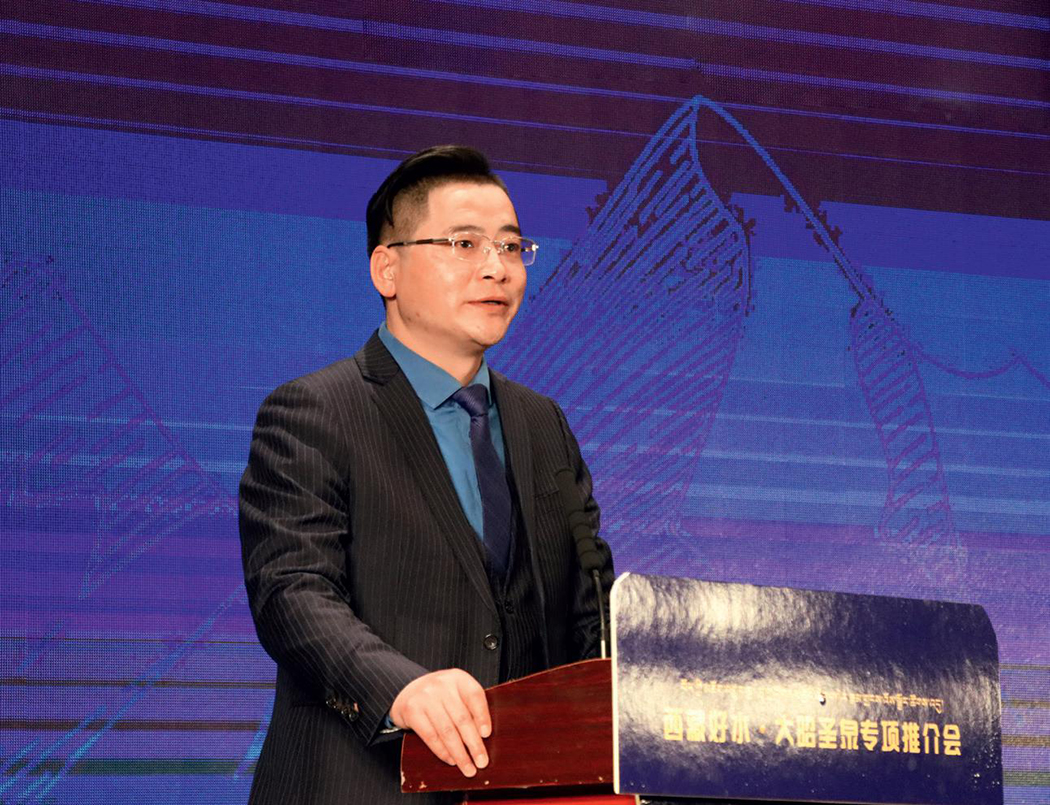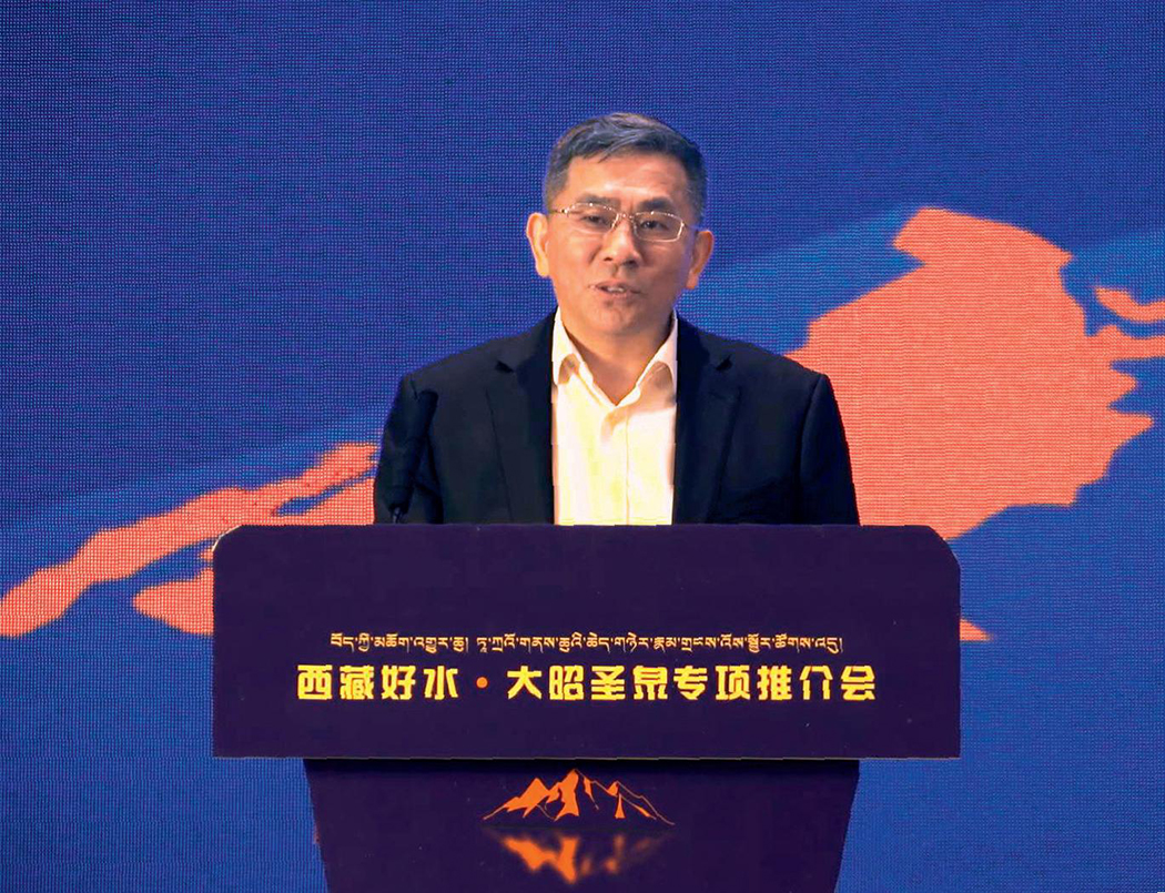 西藏凈善水業(yè)有限公司董事劉建春在推介會(huì)上詳細(xì)介紹了公司情況、企業(yè)文化和大昭圣泉產(chǎn)品、市場(chǎng)計(jì)劃,宣布推出兩款升級(jí)新品“金山”和“格?;ā?,大桶裝水上市。
