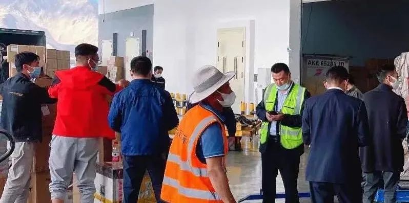 (圖為保障運(yùn)輸拉薩市應(yīng)急藥物和檢測物資現(xiàn)場)