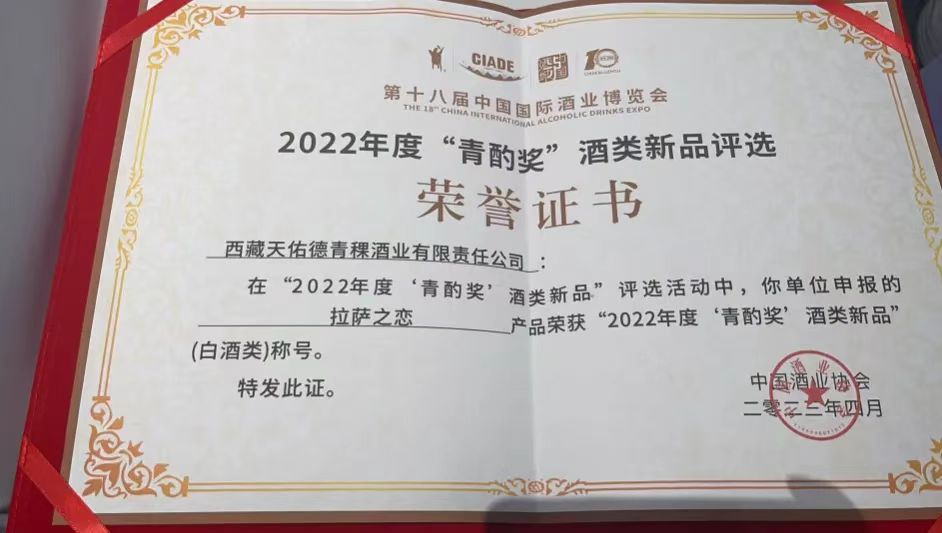 4 月 13 日,第十八屆中國國際酒業(yè)博覽會在瀘州國際會展中心開幕。本屆酒博會上,中國酒業(yè)協(xié)會發(fā)布了 2022 年度“青酌獎”酒類新品榜單?!扒嘧锚劇庇兄熬茦I(yè)奧斯卡”的美名,其重要性和含金量不言而喻, 西藏阿拉嘉寶高原酒莊青稞酒生產(chǎn)的阿拉嘉寶“拉薩之戀”經(jīng)過嚴苛評選脫穎而出,成功斬獲“青酌獎”。