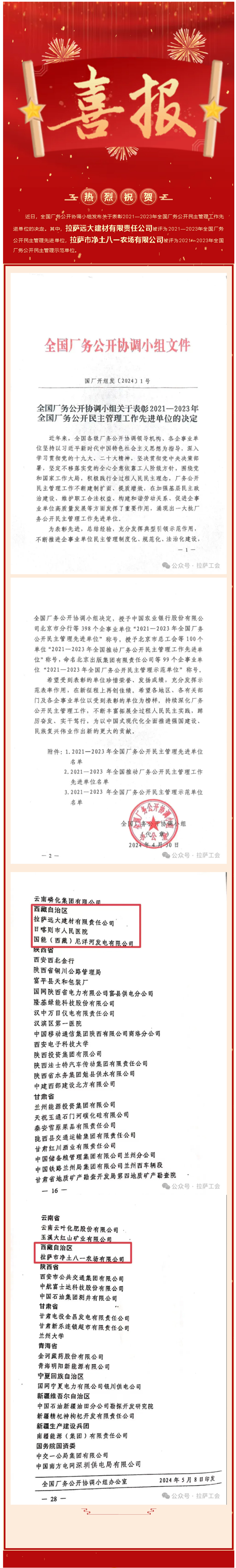 喜訊!全國廠務公開民主管理工作先進單位表彰,拉薩市凈土八一農場有限公司榜上有名