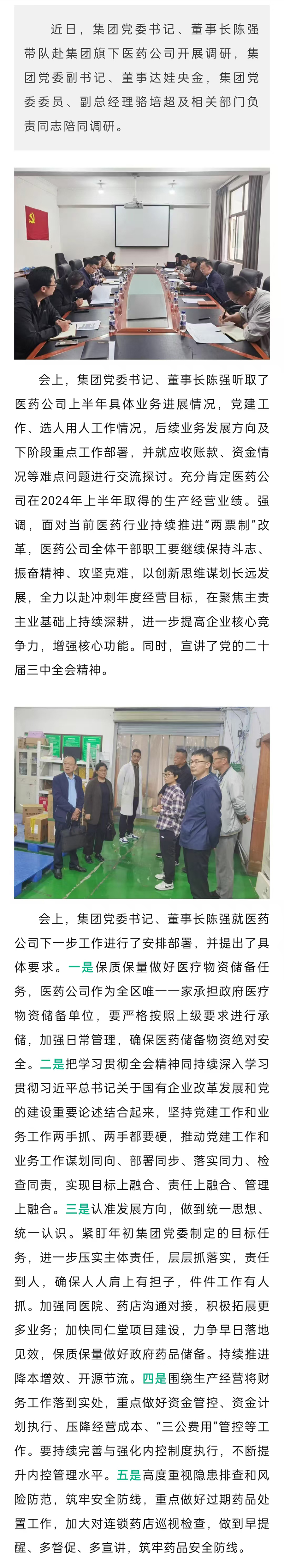 集團黨委書記、董事長陳強帶隊赴醫(yī)藥公司開展實地考察調(diào)研工作