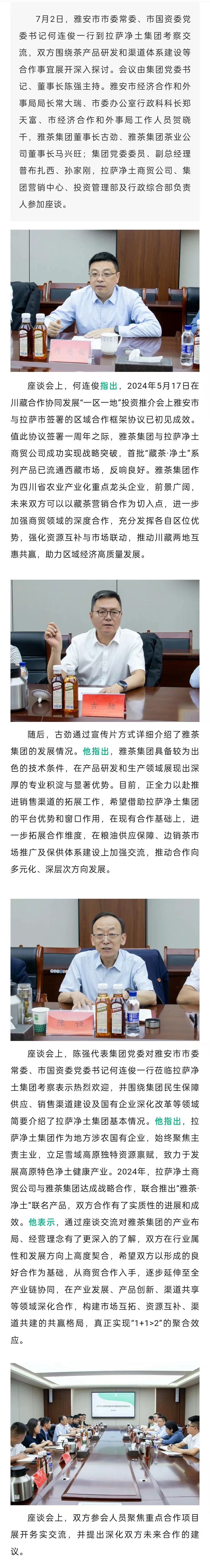 雅安市市委常委、市國資委黨委書記何連俊一行到拉薩凈土集團考察交流