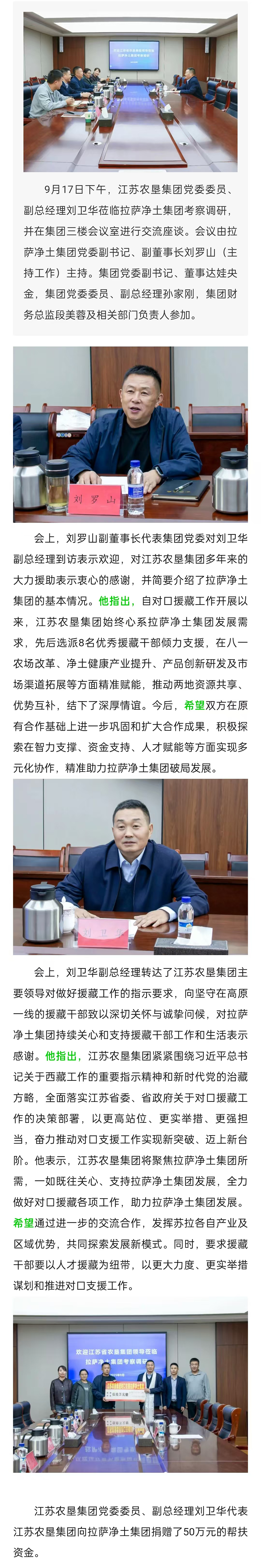 江蘇農(nóng)墾集團(tuán)黨委委員、副總經(jīng)理劉衛(wèi)華赴拉薩凈土集團(tuán)考察調(diào)研