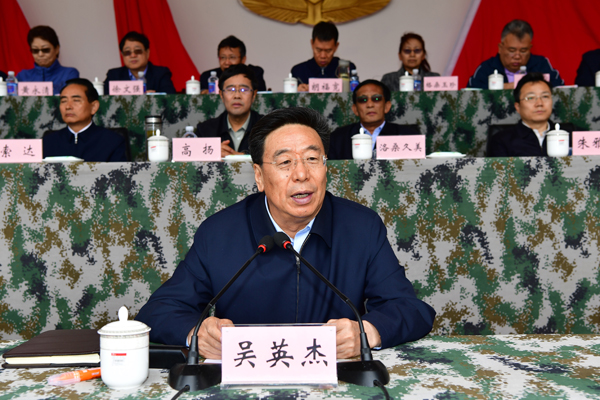 (圖為自治區(qū)黨委書(shū)記吳英杰在誓師動(dòng)員大會(huì)上講話)