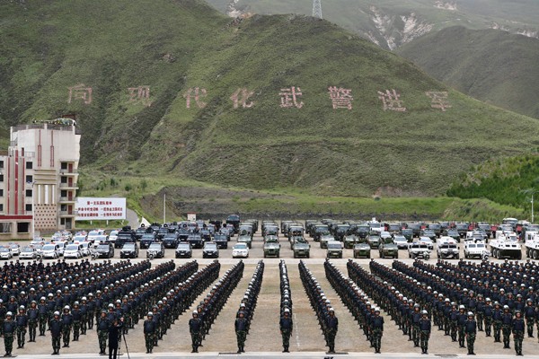 (圖為自治區(qū)及拉薩市隆重舉行迎接新中國(guó)成立70周年大慶安保維穩(wěn)力量誓師動(dòng)員大會(huì)及武裝拉動(dòng)活動(dòng)現(xiàn)場(chǎng))